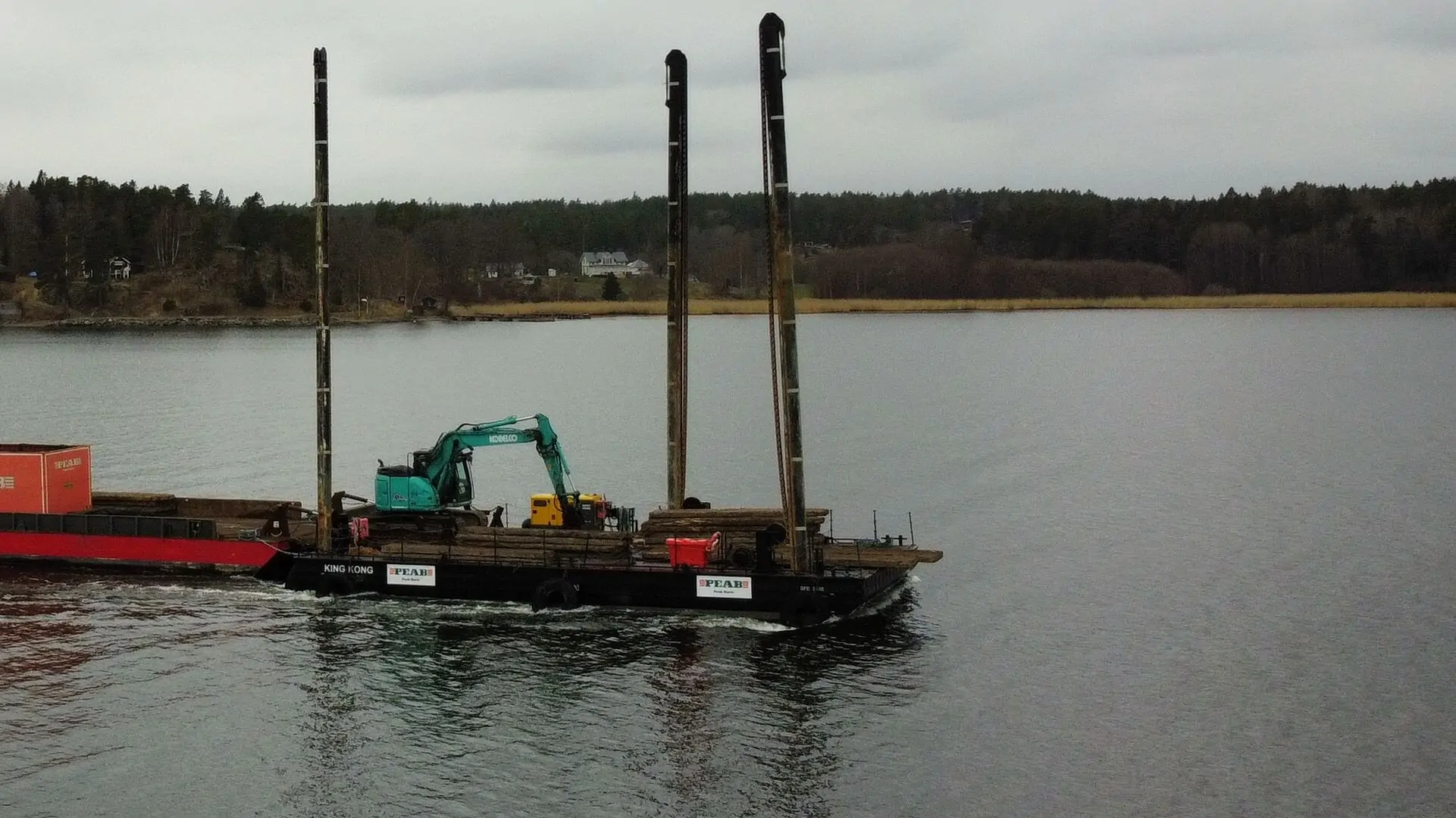 Tack vare våra pråmar, maskiner och samarbeten med BigBag och Sortera kan vi hämta avfallet där det står, även där det saknas bilväg.